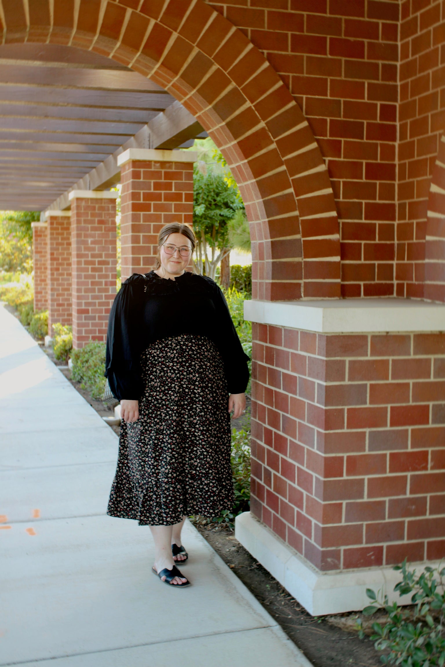 Textured fabric shirring yoke long sleeve blouse with tassel trim.